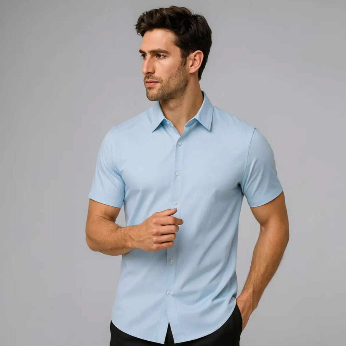 Gracias a esta innovación, nuestras camisas se mantienen sin arrugas, transpirables y con una elasticidad que garantiza una total libertad de movimiento.