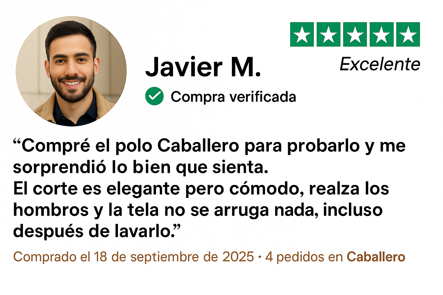 Te recomendamos tu **talla habitual** para un ajuste cómodo. Si prefieres un acabado más **entallado**, considera una talla menos. (Puedes consultar la **guía de tallas** de la página del producto).